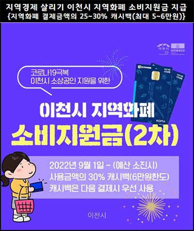 1) 지역경제 살리기 <이천시 지역화폐 소비지원금> 지급