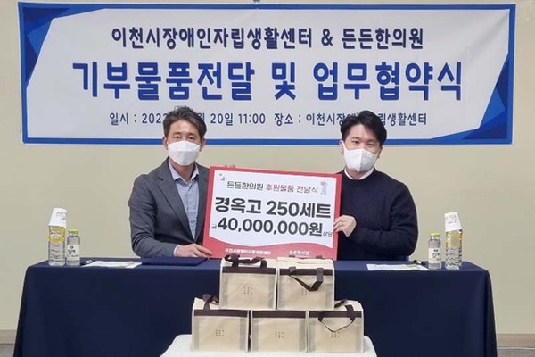 [마이TV=이천] 이천시장애인자립생활센터는 이천 든든한의원(원장 윤한규)을 통해 기부물품 전달식을 진행했다고 23일 밝혔다.