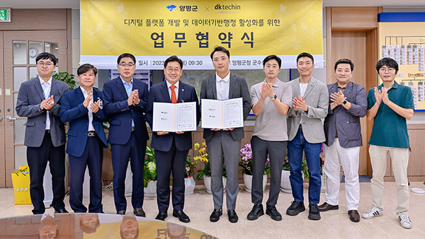 [마이TV=양평] 경기 양평군은 카카오 정보기술(IT) 솔루션 자회사 ㈜디케이테크인(대표 이원주)과 지난 6일 군청에서 ’데이터기반행정 디지털 플랫폼 개발을 위한 업무협약‘을 체결했다.