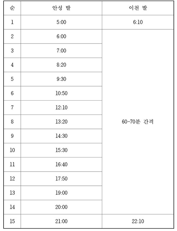 [마이TV=안성] 경기 안성시는 이달 13일부터 8203번(이천) 직행좌석형 시내버스 운행을 시작한다고 밝혔다.