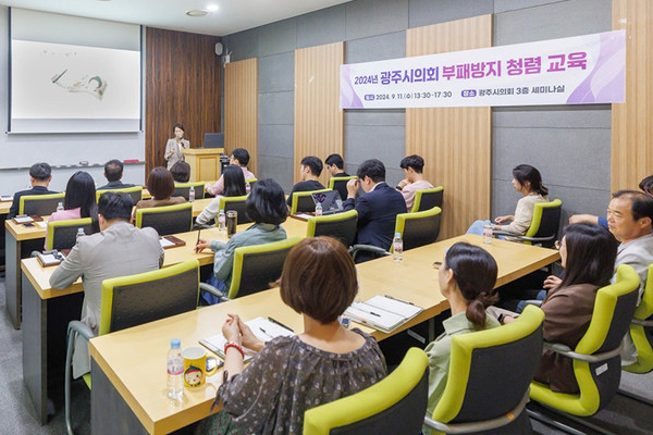 [마이TV=광주] 광주시의회가 김정현 한국청렴리더십연구소 대표를 초청해 부패방지 청렴교육을 실시했다.