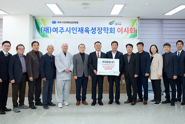 이날 인재육성장학회 이사회가 끝난 후 관내 기업 ㈜현대환경(대표 고광만)에서 지역인재양성을 위한 장학금 지급에 사용해달라고 1,000만원을 기탁했으며, 기탁식에 참여한 이충우 여주시장과 윤은호 이사장은 기탁자의 기부목적에 맞게 지역 인재를 위한 장학금으로 잘 사용하겠다며 감사한 마음을 전했다,