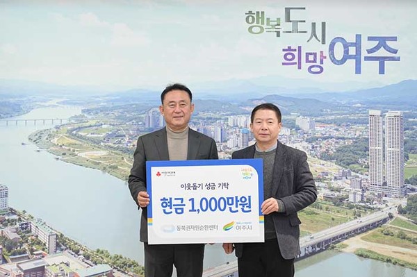[마이TV=여주] 동북권자원순환센터(대표 김명대)는 지난 8일 여주시를 방문해 이웃돕기 성금 1,000만원을 기탁했다.