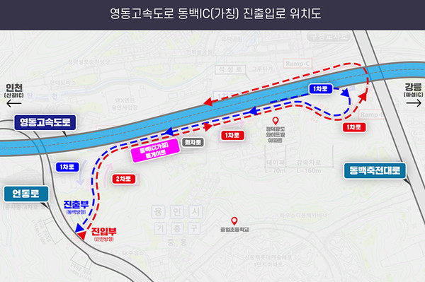 동백·구성·언남 일대 시민들의 영동고속도로 진입과 접근 편의성을 높이기 위해 기흥구 청덕동에 있는 ‘시도3호선 언동로’부터 ‘영동고속도로’까지 1.1㎞ 길이의 진출부를 설치하는 협약이 체결됨에 따라 사업은 본격적으로 진행될 것으로 예상된다.