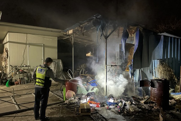 화재 현장에 도착한 경찰관들은 즉시 임무 분담을 통해 119에 신고하고, 주민을 대피시킨 후 순찰차에 비치된 소화기로 신속히 초기 진화를 했고, 도착한 소방대원들과 함께 화재를 진화해 대형 화재 발생을 사전에 방지할 수 있었다.