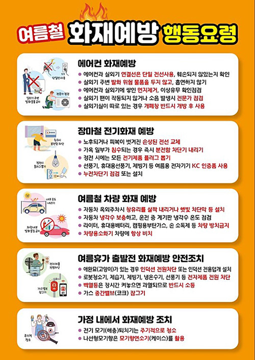 최근 5년간 여름철 화재 41,826건에 달해..주요 요인은 전기적요인, 안전수칙 준수 당부