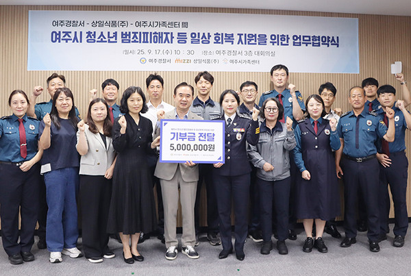[마이TV=여주] 경기 여주경찰서(서장 조미연)는 17일 상일식품(주), 여주시가족센터와 함께 청소년 범죄 및 관계성 범죄피해자 등에 대한 일상회복을 돕기 위한 업무협약(MOU)을 체결했다.