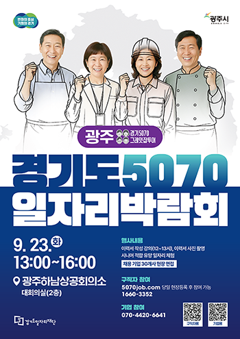 [마이TV=경기] 경기도와 경기도일자리재단은 오는 23일 광주하남상공회의소에서 중장년층을 위한 ‘2025 경기도 5070 일자리박람회 in 광주’를 개최한다.