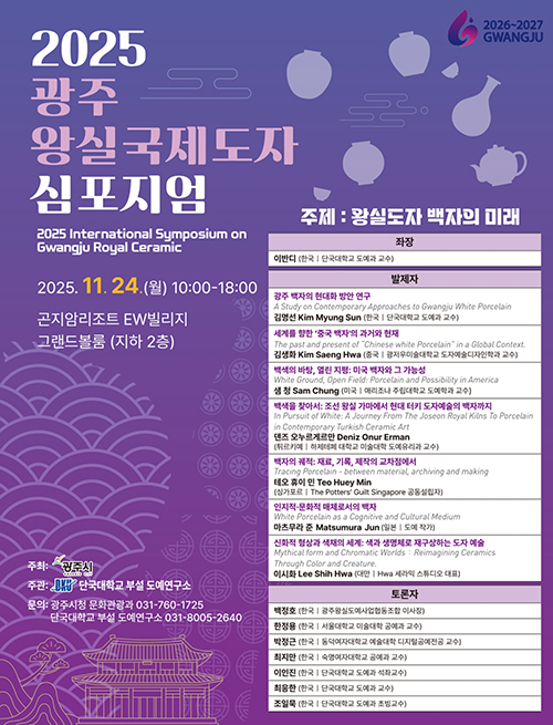 [마이TV=광주] 경기 광주시는 오는 24일 곤지암리조트 컨벤션홀에서 ‘2025 광주왕실 국제도자심포지엄’을 개최한다고 14일 밝혔다.