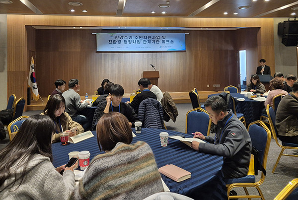 이번 워크숍에는 환경부와 4대강 유역환경청, 4개 시·도 및 36개 지자체 담당자 등 약 130명이 참석해 2026년 정책 방향. 제도 개선 사항, 태양광 설치 사례, 우수사례 공유 및 분임 토의 등을 진행했다.
