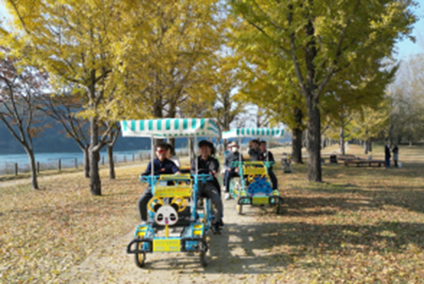 자전거관광 프로그램은 다인승·이색 자전거를 활용해 강변길과 은행나무길을 30분간 순환하는 체험형 라이딩으로 구성되었다. 가족·연인 단위 방문객의 호응이 컸으며, 폴라로이드 사진 촬영과 축제 쿠폰 제공 등 부가 프로그램을 함께 운영해 강천섬의 새로운 매력을 느낄 수 있었다.