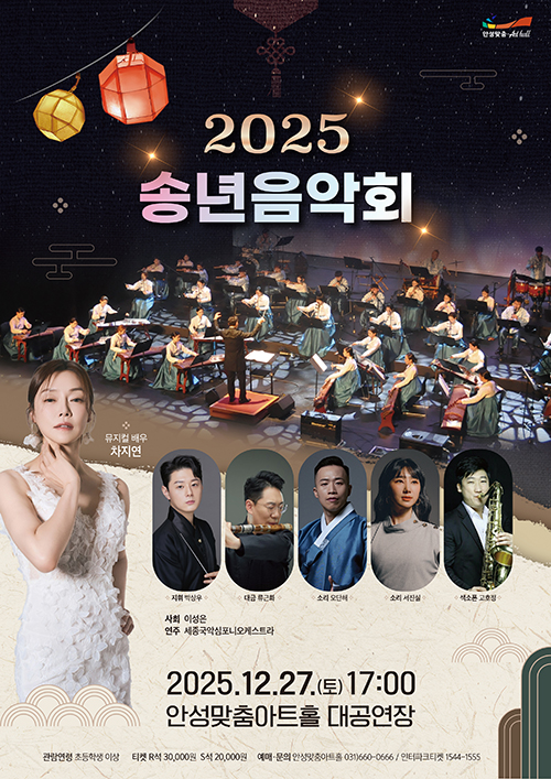 [마이TV=안성] 경기 안성맞춤아트홀은 오는 27일 토요일 오후 5시, 세종국악심포니오케스트라와 함께하는 <2025 송년음악회>를 개최한다.