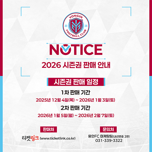 용인FC 김진형 단장은 “창단 첫 시즌을 앞두고 팬들과 함께 팀의 첫 역사를 만들어가기 위한 준비에 최선을 다하고 있다”며 “K리그2 구단 중 가장 먼저 시즌권을 선보인 것은 시민 여러분의 기대에 신속히 응답하고, 팬 경험 중심의 서비스를 제공하겠다는 의지의 표현”이라고 밝혔다.